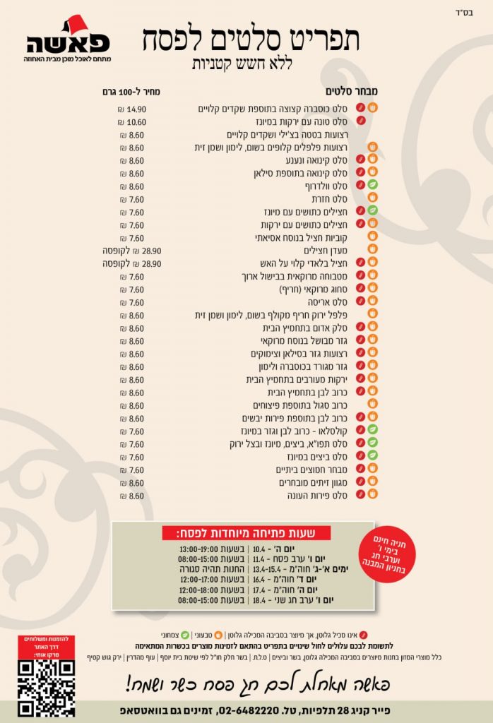 תפריט חנות אוכל מוכן לפסח